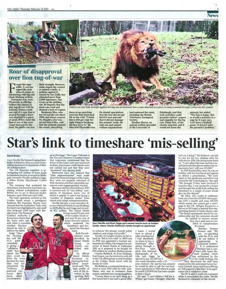 Last week, David Brown in The Times reported on former footballers Ryan Giggs and Gary Neville and their links to a Maltese timeshare resort now under scrutiny over alleged timeshare mis-selling and related loan agreements. The article refers to loans reportedly brokered by unregulated introducers. It also mentions our legal associates, M1 Legal, as the solicitors who helped prompt the investigation on behalf of many Azure clients they represent.